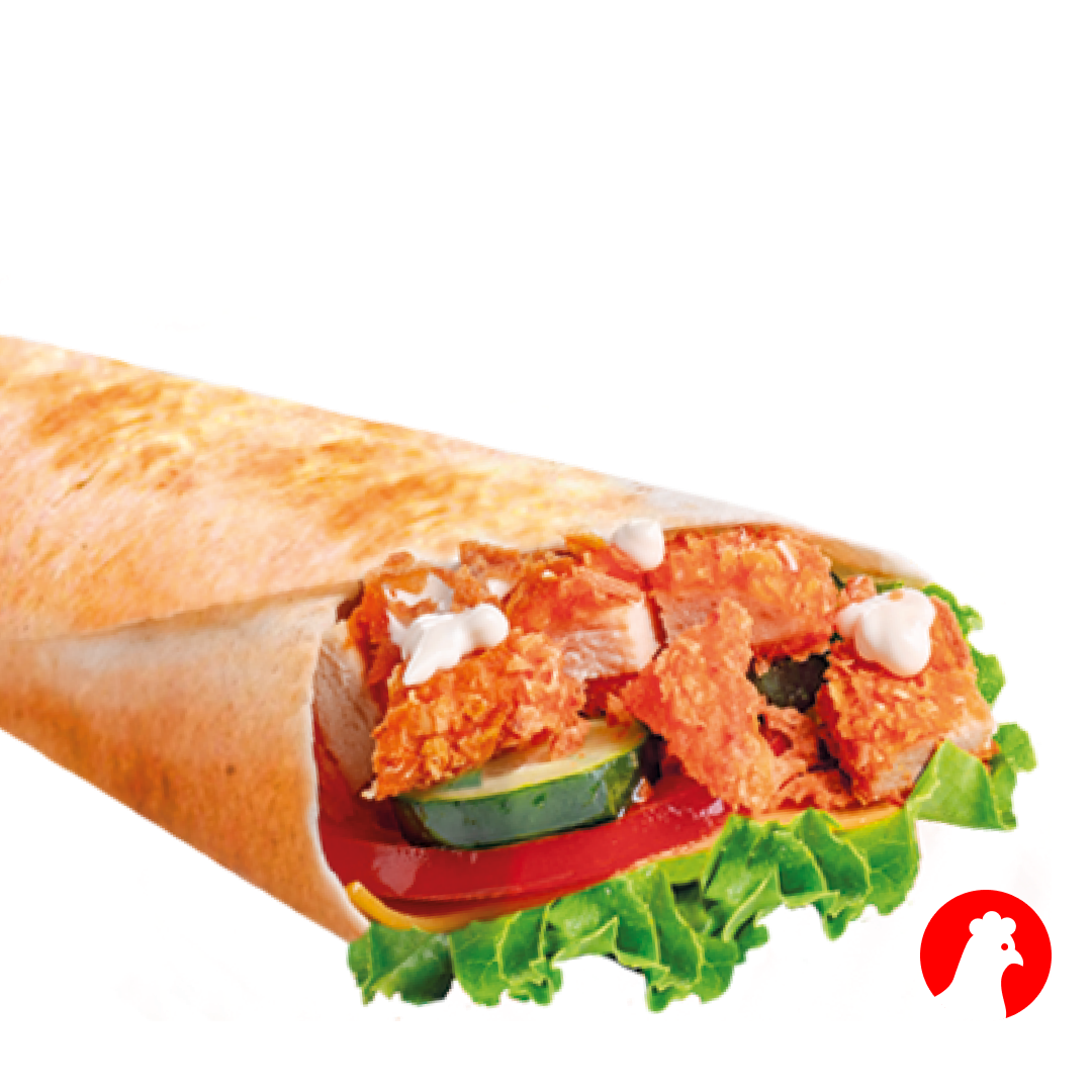 Ролл с хрустящей куриной котлетой, ломтиком сыра чеддер, свежими помидорами, салатом айсберг и огурцами. Все это в пшеничной тортилье, под соусом макси бургер.